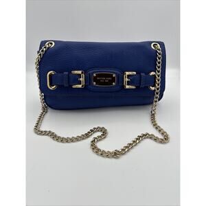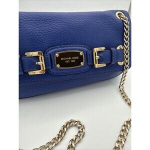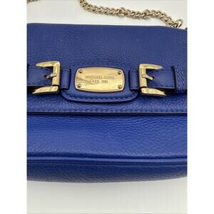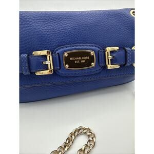 AUTH. MICHAEL KORS Hamilton Blue Leather Gold Chain Buckle Shoulder Flap Bag EUC