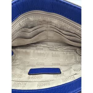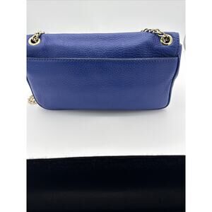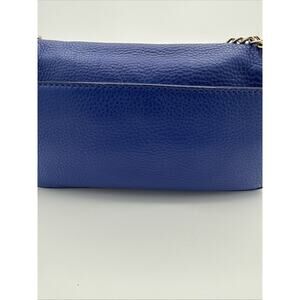 The AUTHENTIC Michael Kors Hamilton Blue Leather Gold Chain Buckle Shoulder Flap Bag is a luxurious and stylish women's handbag perfect for all seasons! Made from high-quality leather in a stunning royal blue color, this shoulder bag features a gold chain buckle closure and matching gold hardware accents. The interior is lined with gold, adding a touch of elegance to the overall design. The Michael Kors Hamilton model is known for its sleek and sophisticated style, making it a must-have accessory for any fashion-forward woman looking to elevate her outfit.