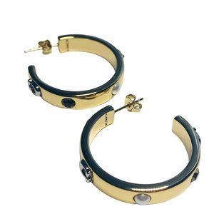 AUTH NEW Coach Gold Pegged Signature & Stone Hoop Earrings w/Card/Tag & Dust Bag