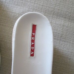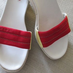 AUTH PRADA $275 red yellow logo SANDALS