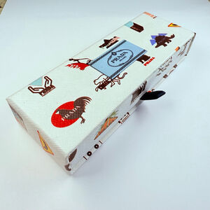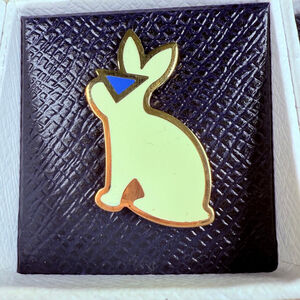 Authentic Prada Boutique Item straight from the Runway. The trio includes the hard to find Prada logo Robot with raised eyes, A Rabbit with the Prada logo as sunglasses and a Prada Blue logo pin. Comes New in box and with the actual Prada store card which references the set as "Smalto Show Jewelry" with the item codes and barcode. Very highly collectible piece/s by Prada!