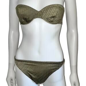 AUTH VTG Christian Dior Green Oblique Trotter Monogram Logo Bikini Swimsuit Set