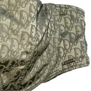 Authentic Vintage 90s Christian Dior Olive Green All Over Oblique Trotter Logo Print, Strapless, Bustier Style, Stretchy Bikini Swimsuit with Silver Logo Clasp. Very Rare!