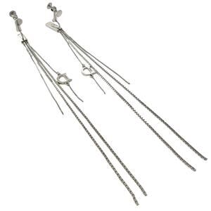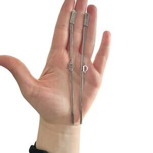 AUTH VTG Christian Dior Silver Long Chain D Charm Logo Fringe Tassel Earrings