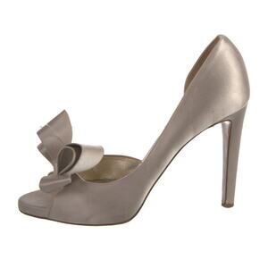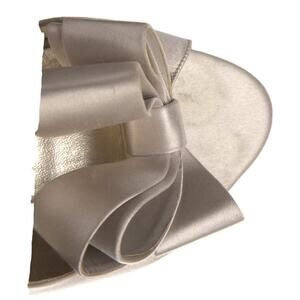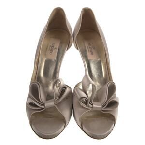 AUTH Valentino Couture Satin Bow Silver Beige D'orsay Slip On Peep Toe Pump 38.5