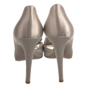 Elevate your fashion game with these stunning Valentino Couture satin pumps. The slip-on peep toe design features a beautiful silver beige color with a metallic theme. The ultra-high stiletto heel is adorned with a chic bow accent, adding a touch of elegance to any outfit.