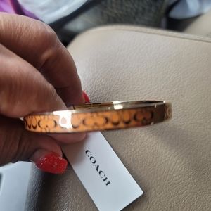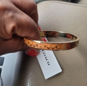 AUTHENTIC 100% COACH Women's C Logo Hinged Bangle Bracelet Tan color ,goldNWT