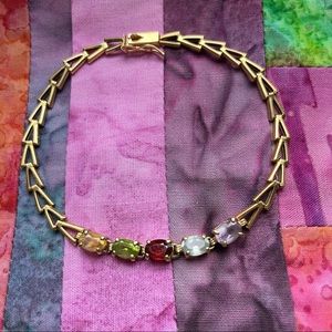 - AUTHENTIC 14K GOLD LINK BRACELET SET WITH 5️⃣ STONES-VINTAGE EUC💚💛💜❤️FINAL