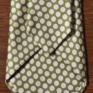 AUTHENTIC BORRELLI 100% SILK NECKTIE GREEN W/WHITE POLKA DOTS