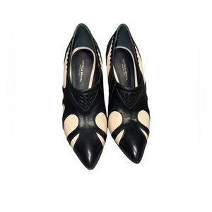 AUTHENTIC BOTTEGA VENETA leather ivory & black POINTED TOE pointed pumps size 38