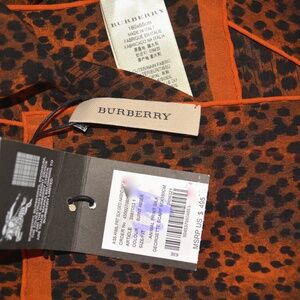 The NWT Burberry Silk Animal Print Scarf Wrap is a luxurious and stylish accessory for women. Made in Italy from high-quality silk, this scarf features a bold animal print pattern in a burnt amber color. The Burberry brand name ensures both quality and style, making it a perfect addition to any wardrobe. Perfect for adding a touch of elegance to any outfit, this scarf is a unique and fashionable piece that is sure to make a statement.