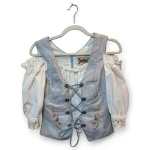 AUTHENTIC Blue & White Lederhosen Dirndl Set Size S Linen Blend RARE