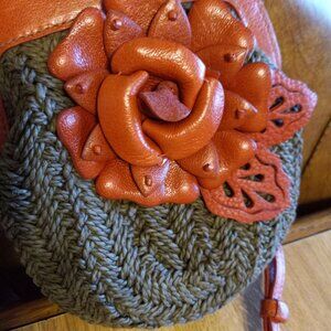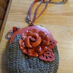 AUTHENTIC Brighton Wicker w Leather Trim & Flower Crossbody Bag Handbag Purse