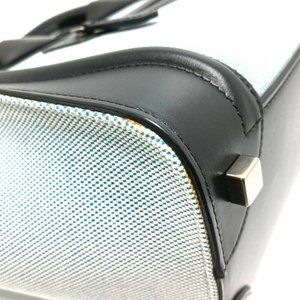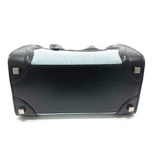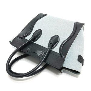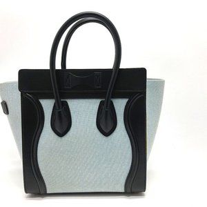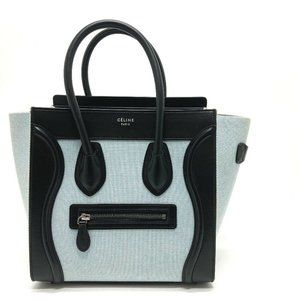 AUTHENTIC CELINE 167792 Luggage micro Shopper Hand Bag Leather/Canvas Blue x Bla