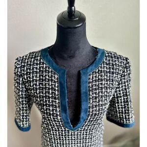 AUTHENTIC CHANEL 17A BLUE GREEN WHITE MULTICOLOR TWEED SUEDE LEATHER DRESS 38