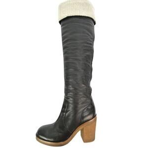 AUTHENTIC CHANEL TALL BLACK LEATHER AND WOOL RIDING BOOTS KNEE HIGH SIZE 6