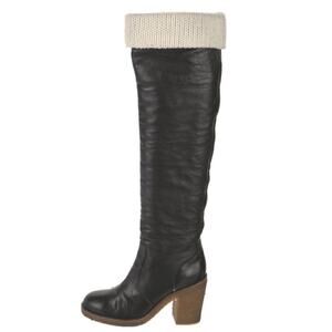 AUTHENTIC CHANEL TALL BLACK LEATHER AND WOOL RIDING BOOTS KNEE HIGH SIZE 6