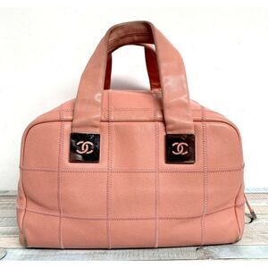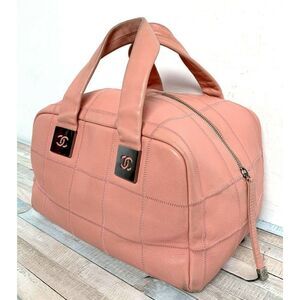 AUTHENTIC CHANEL CAVIAR PINK STITCH LEATHER MEDIUM ZIP TOP SQUARE PURSE HANDBAG