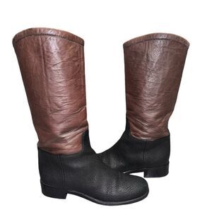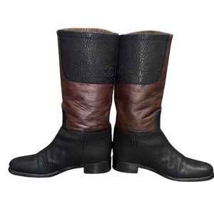 AUTHENTIC CHANEL Two Tone BLACK & brown Interlocking C Riding equestrian boots