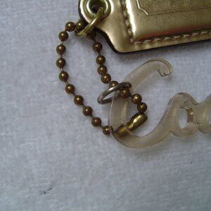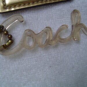 AUTHENTIC COACH GOLD METALLIC LEATHER AND GOLD COACH ACRYLIC HANG TAGS VGC