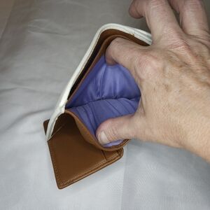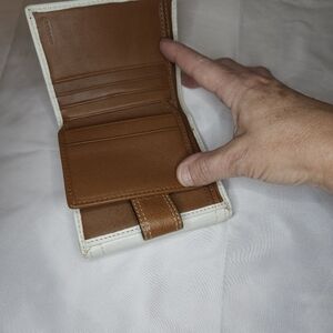 AUTHENTIC COACH SOHO BI-FOLD WHITE BROWN LEATHER BUCKLE FLAP WALLET ORGANIZER