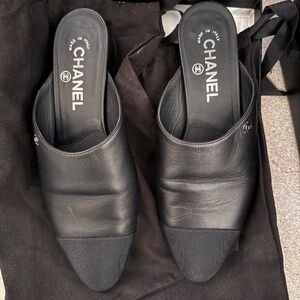 AUTHENTIC Chanel 2018 Interlocking CC Logo Mules Women's Size: 7 | IT 37