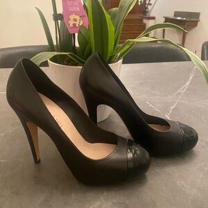 AUTHENTIC Chanel Black Leather Cap Toe Pumps - Size 39 (US 8.5/9)