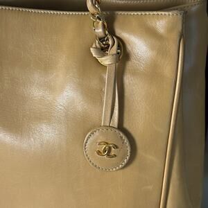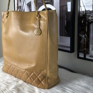 AUTHENTIC Chanel Tote Shoulder Bag Matelasse Beige Lamb Skin