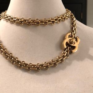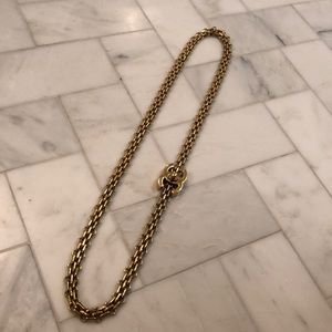 AUTHENTIC Chanel Gold chain necklace with cc clasp. Approximately 16 length/circumstance with 1.25 inch CC detail clasp. Gently used...slight surface scratches. Comes with box and duster. Price is firm!