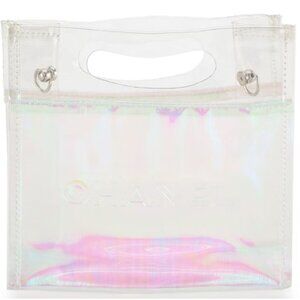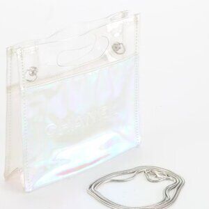 AUTHENTIC Chanel iridescent clear mini tote on chain strap - festival friendly !