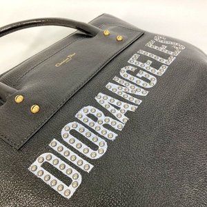 AUTHENTIC Christian Dior Logo studs DIORANGELS 2WAY Tote Bag Leather Black