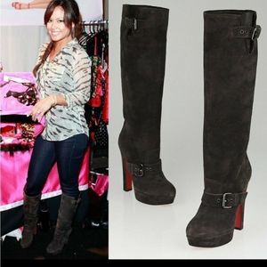 AUTHENTIC Christian Louboutin size 37 right below knee suade boots.