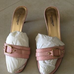 AUTHENTIC DOLCE AND GABBANA LEATHER SANDALS SLIDES PINK SZ 38