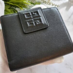 AUTHENTIC GIVENCHY COMPACT BLACK LEATHER BIFOLD WALLET 4G EMBLEM