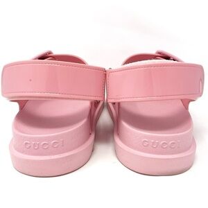 AUTHENTIC GUCCI DOUBLE GG LOGO PINK RUBBER PLATFORM DAD SANDALS SZ 38 or US 8