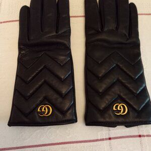 AUTHENTIC GUCCI GG Black Leather Gloves in BOX