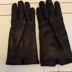 The gloves is a mismatched pair. One glove is size 7 1/2 and another glove is size 8. The sizes are pretty close. They come in the original box and the dust bag. They are in an excellent shape. Looks NEW. Maybe used once or twice if that much. It has a tag " made in Italy ..." inside one glove (size 8). Three pictures (# 8,9,10) show inside tags from larger glove size 8 and last two pictures( #11,12) show inside tags from smaller glove size 7 1/2. All inside tags are shown on the pictures. There are no additional tags except the ones that are on the pictures . The size tags are different color and format in both gloves (check the pictures) since it is a mismatched pair.