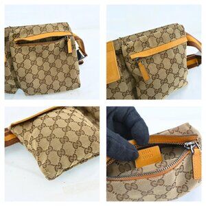 AUTHENTIC GUCCI GG Canvas Waist bag Beige Yellow bsj580-110825