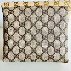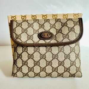AUTHENTIC GUCCI SIGNATURE GG COATED CANVAS LEATHER TRIM COSMETIC POUCH VINTAGE