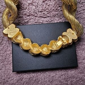 This gold necklace is made with 2 twisted chains of multiple gold strands. All crystals are intact and super shiny!