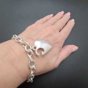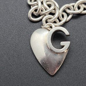 AUTHENTIC Gucci Sterling Silver GG Design Heart Charm Bracelet