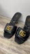 AUTHENTIC Gucci Women's Black Sandal with Gold GG Logo
