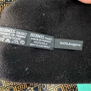 AUTHENTIC HERMÉS MENS BLACK AND GOLD SILK AND ANGORA TRIBAL MUFFLER SCARF