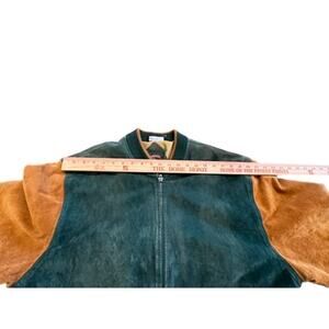 PLZ SEE PICTURES!! Elevate your wardrobe with the "AUTHENTIC IMPORTS" Men's Suede Leather Varsity Jacket. This relaxed-fit jacket, sized XL for a comfortable experience, brings a touch of classic athleticism to your casual ensemble. With its versatile green hue, it's easy to pair with a range of outfits, making it an ideal choice for any occasion. Crafted with a supple leather outer shell and a durable nylon lining, this mid-length coat is designed to keep you comfortable through all seasons. Its polyester insulation ensures warmth, while the zip-up front provides ease of wear. The jacket's timeless 90s sports theme is a nod to nostalgic style, perfect for the fashion-forward individual.