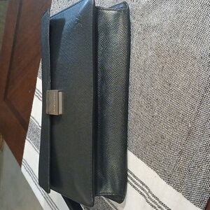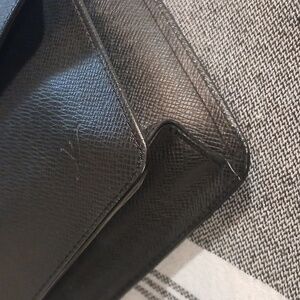 Authentic Louis Vuitton Taiga Selenga Clutch bag black in excellent excellent condition. This clutch bag is beyond beautiful and has very little wear on it. It looks great on both the inside and outside. its 10 inches wide 7.1 inches long and the depth is 2.8 inches. The bag is made of black leather and has a silver lock. If you have any questions please let me know