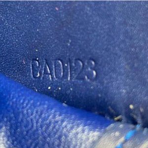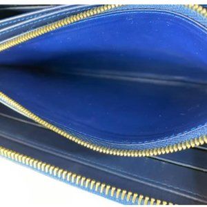 This Zippy Wallet in IKAT VERNIS is SUPER RARE!!! This chic wallet is crafted of glossy monogram embossed patent leather in the blue Ikat floral pattern. Gorgeous blue interior. This wallet features 8 credit card slots, a zippered coin pocket as well as gusseted large compartments. Gold hardware & zip closure. Made in Spain. Authentication certificate. The date code indicates a production date of: 2nd week of 2013 in Spain. Comes with box & dust bag.