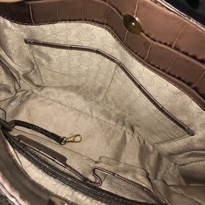 Authentic LIKE NEW Michael Kors bag! Beautiful brown Alligator like leather. No scuffs or scratches on the exterior or interior! If you need more pics please let me know.