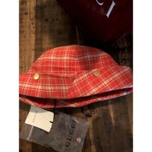 NWT Authentic GUCCI Plaid Cloche Orange and cream plaid cloche hat, Designer size L/59. From the 2017 Spring/Summer Collection. New with tags in