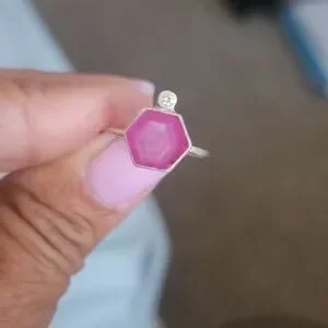 with a white topaz chip on top..this is a dainty ring. a beautiful ring set in 925 ss. made by a jewelry artist in my town.