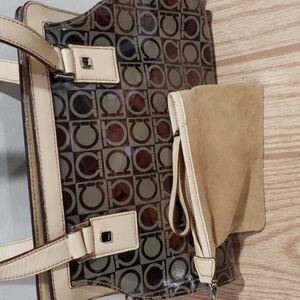 AUTHENTIC SALVATORE FERRAGAMO TRANSLUCENT LOGO PRINT PVC TOTE BEIGE/BROWN 10.5x8